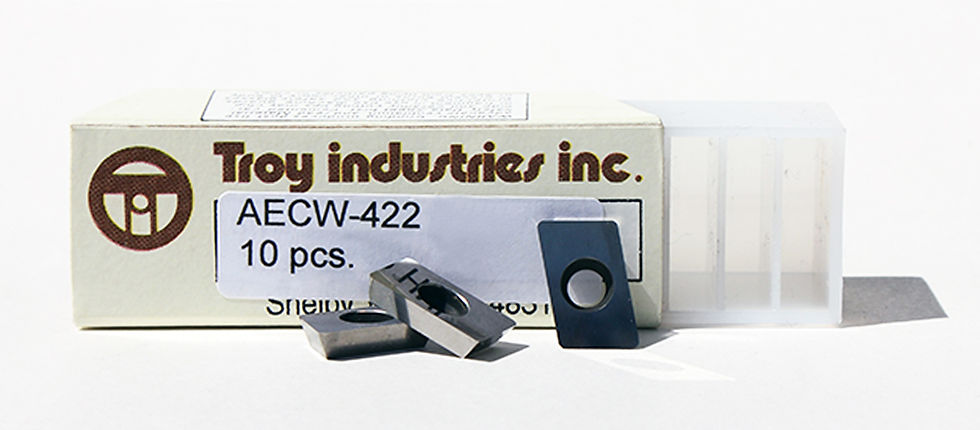 All Troy Industries AECW inserts have a precision ground cutting edge. Not like your typical insert where the cutting edge is just pressed and not ground after. Having this ground edge gives Troy Industries inserts a stronger and more precision cutting edge and can be used from roughing, semi-finishing, & finishing applications.