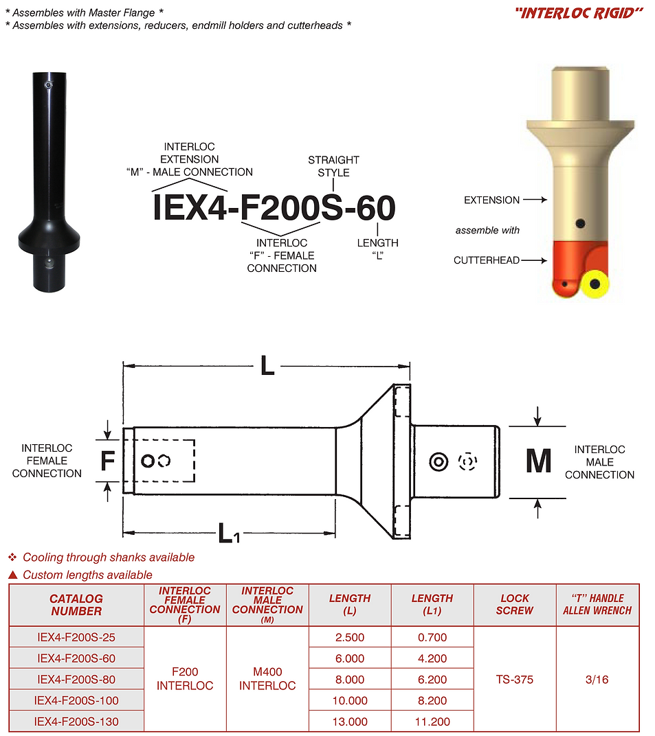 (Extensions Have The Interloc Rigid M400 Connection Which Connects Directly To Any Interloc CAT-50 Flange Mount Holders)